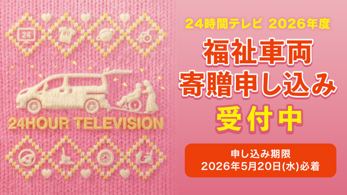 お送りいただいた申込書類の内容および住所・氏名などの個人情報は、申し込み審査および審査結果の通知に使用いたします。 なお、上記内容の個人情報は24時間テレビチャリティー委員会で厳重に管理し、2028年3月末日までに廃棄いたします。