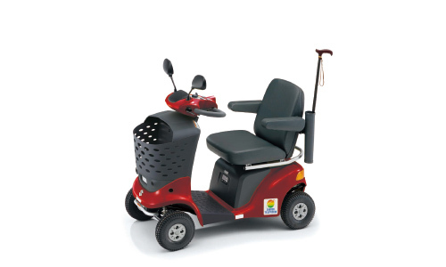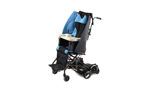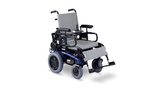 充電式バッテリを搭載し、手元レバーまたはハンドルの操作によって電動で走行できる車いすです。