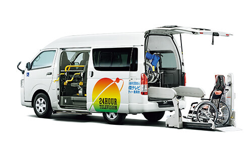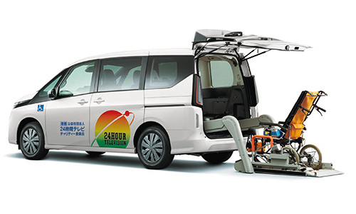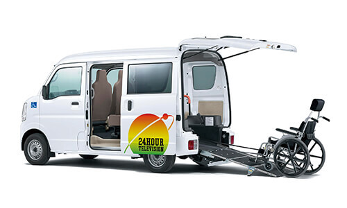 第1回より贈呈を続けてきた福祉車両。昨年までの贈呈台数は、12,648台となりました。24時間テレビチャリティー委員会では、毎年車両メーカーと贈呈車両の研究、改良を続けています。2013年からは従来、贈呈を行ってきた車いす移送車両や訪問入浴車に加え、就労支援や訪問介護など団体のニーズに応えることができるオーダーメイドの車両「福祉サポート車」の贈呈も行っています。