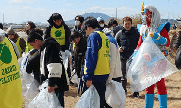 2004年、24時間テレビチャリティー委員会の支援の柱である「福祉」「災害復興」に「環境」という分野が新たに加わり、日本テレビ・山梨放送・静岡第一テレビの3社共催による「富士山をきれいにするプロジェクト」から、「24時間テレビ」の環境支援が始まりました。それから21年、ボランティアをはじめとするたくさんの方々のご協力に支えられながら、全国各地で水辺・山辺の清掃活動、環境保全活動、環境教育活動などの環境支援活動を続けています。この活動により地球環境全体への関心・意識が高まること、またそれをメディアが主体的に行い、伝えていくことによって活動の輪が広がることを目指しています。